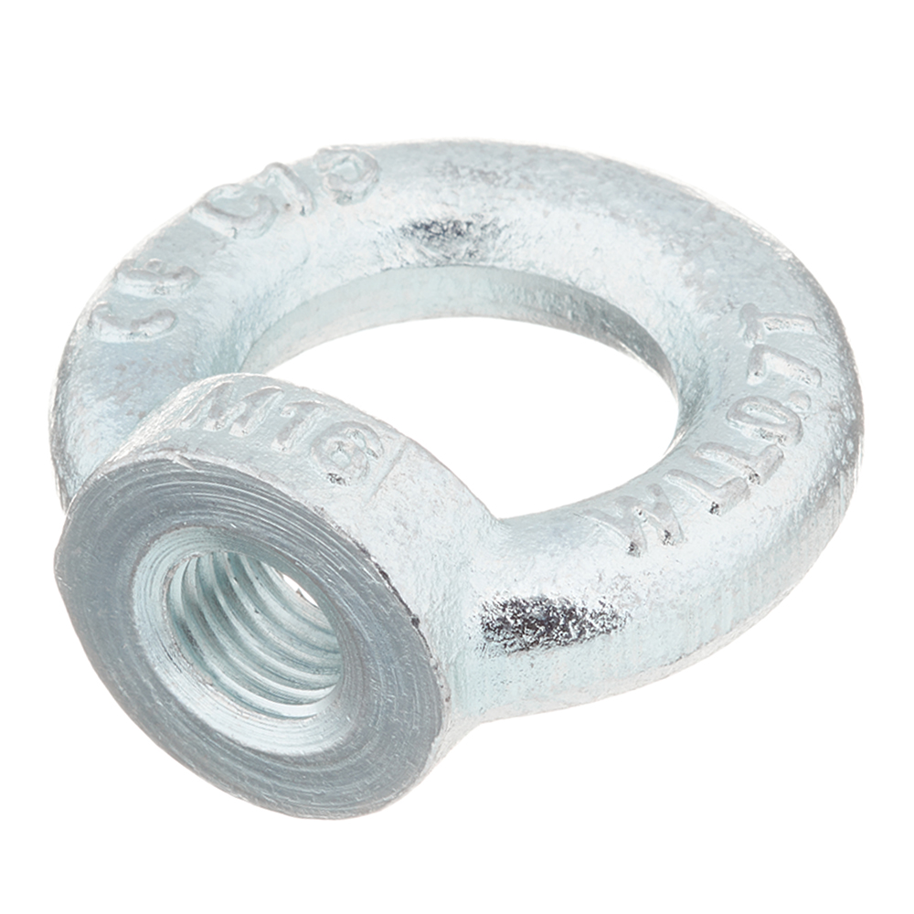 Предназначена для подъема грузов при такелажных работах, а также применяется для крепления и растяжки цепей, тросов. Используются в сочетании со штангами, болтами соответствующего диаметра. Рым-гайка представляет собой стальное кольцо, в основании которого расположено сквозное отверстие с метрической резьбой.