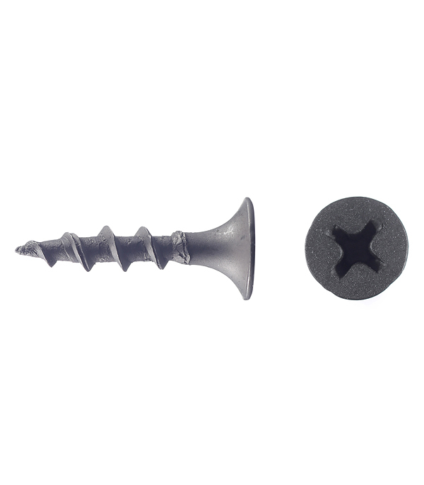 Саморезы имеют потайную головку с крестообразным шлицем PH2, острый наконечник и редкую резьбу. Производятся из углеродистой стали с последующим оксидированием для защиты от коррозии.