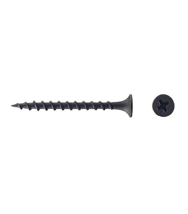 Саморезы имеют потайную головку с крестообразным шлицем PH2, острый наконечник и редкую резьбу. Производятся из углеродистой стали с последующим оксидированием для защиты от коррозии.