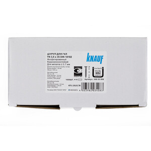 Главная / Каталог / Крепеж / Саморезы и шурупы / Саморезы по металлу / Саморезы гипсокартон-металл / Саморезы ГМ 35×3,5 мм с битой TN Кнауф (1000 шт.)