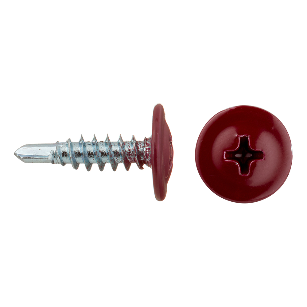 Главная / Каталог / Крепеж / Саморезы и шурупы / Саморезы по металлу / Саморезы с прессшайбой / Саморезы клопы 16×4,2 мм с буром Daxmer (200 шт.) красный RAL 3005