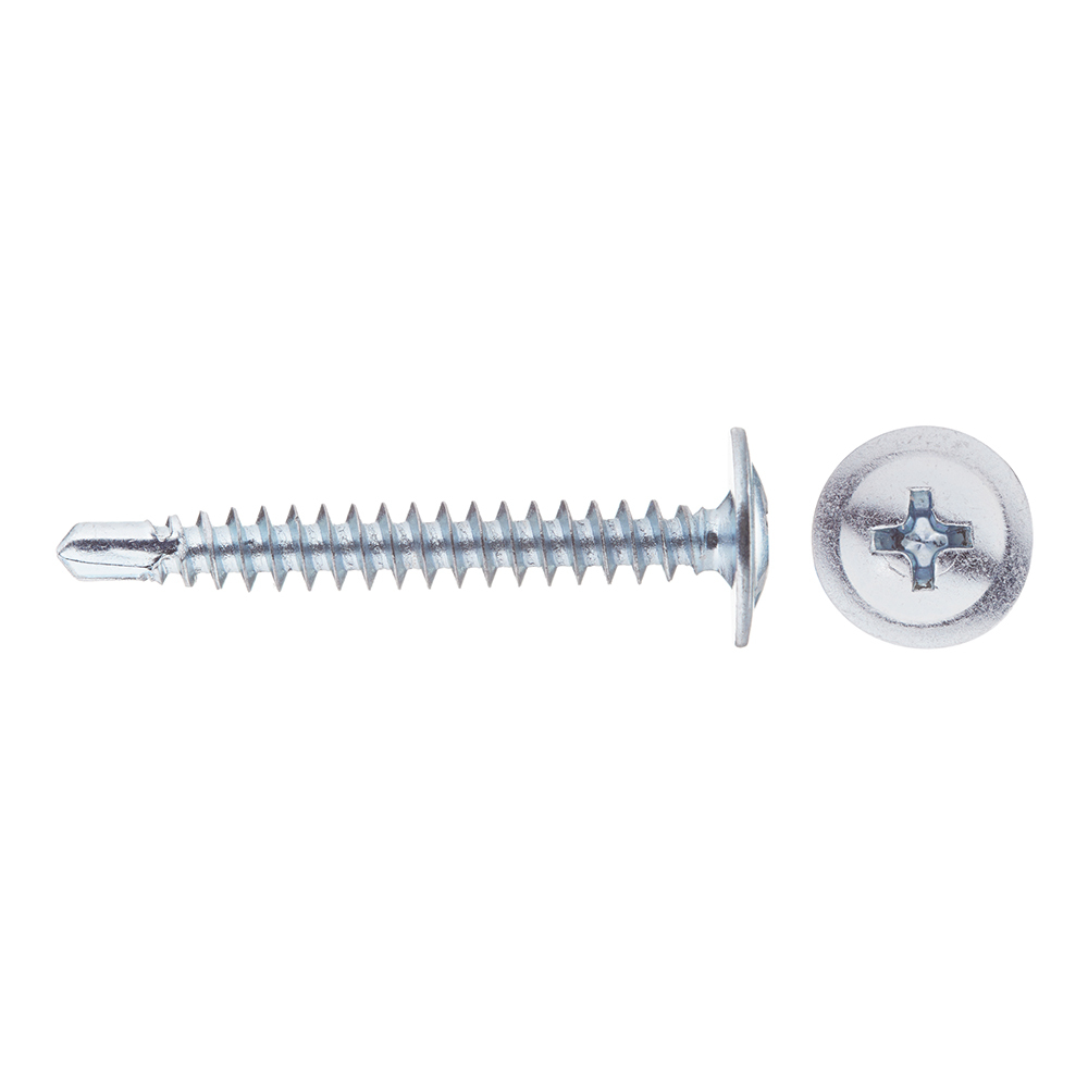 Саморезы имеют полусферическую головку с прессшайбой и крестообразным шлицем PH2, резьбу с мелким шагом и наконечник в виде бура. Производятся из оцинкованной стали.