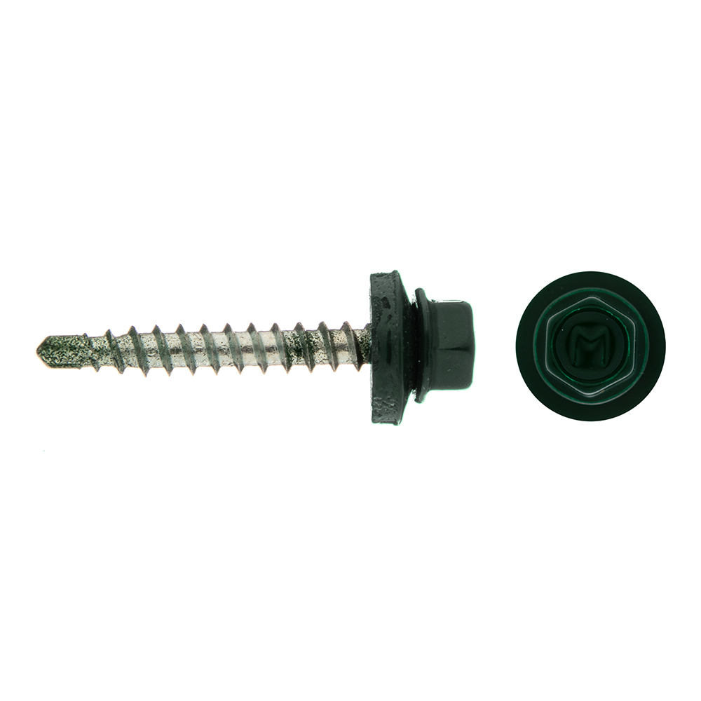 Саморезы кровельные с буром 35х4,8 мм металл-дерево зеленые RAL 6005 Daxmer (250 шт.)