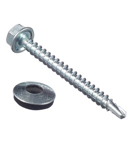 Саморезы имеют шестигранную головку под ключ 8 мм и шайбу с резиновой уплотняющей прокладкой для герметизации соединения.