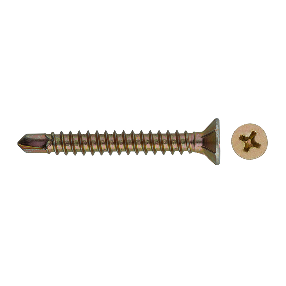 Потайная головка самореза имеет зенкующие и предохраняющие от раскручивания насечки, крестообразный шлиц PH2, резьбу с мелким шагом и наконечник в виде бура. Производятся из оцинкованной стали.