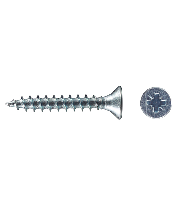 Саморезы имеют потайную головку с крестообразным шлицем PZ 2 и острый наконечник. Производятся из оцинкованной стали.