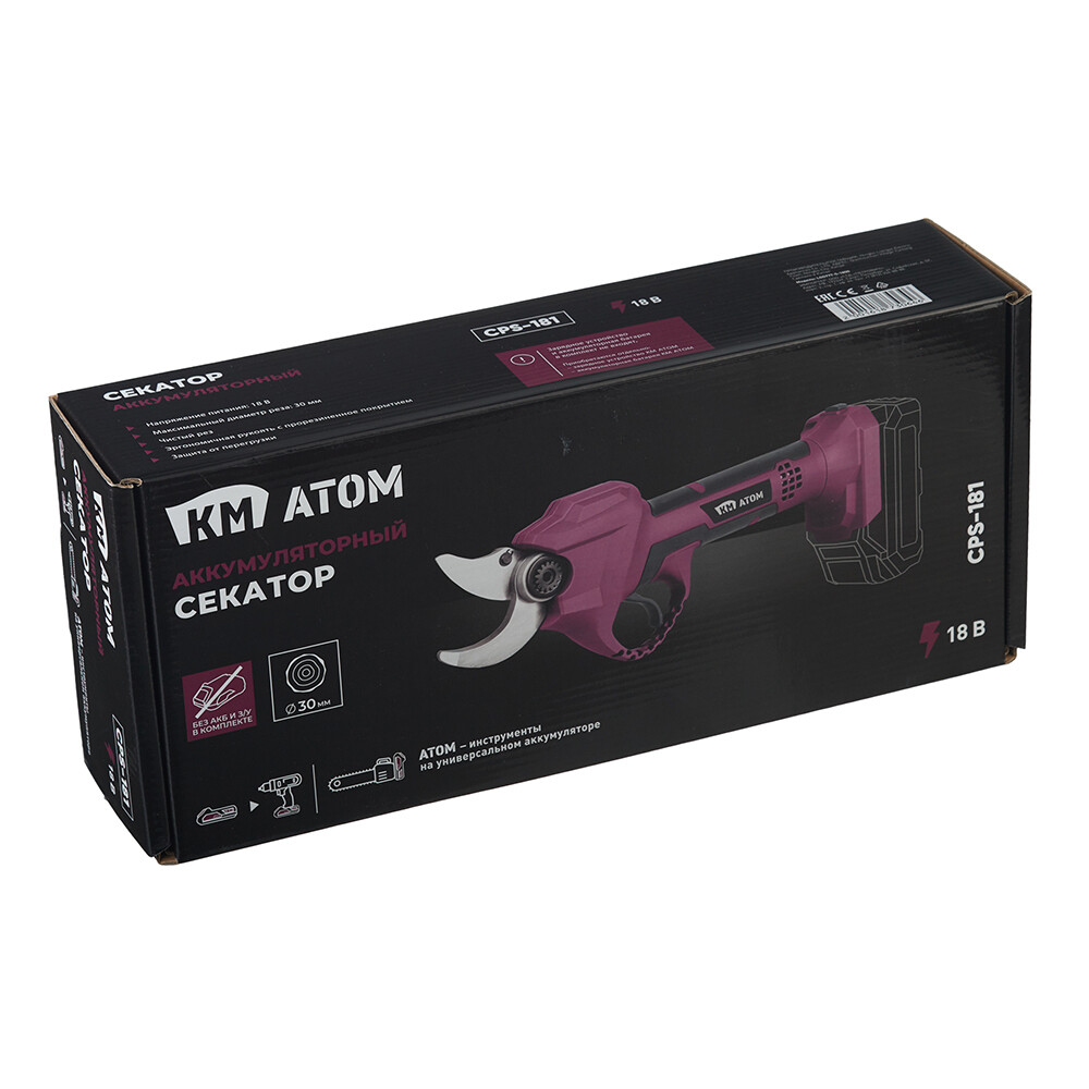 Секатор для деревьев и кустарников аккумуляторный КМ АТОМ 18 В без АКБ и ЗУ (CPS-181)