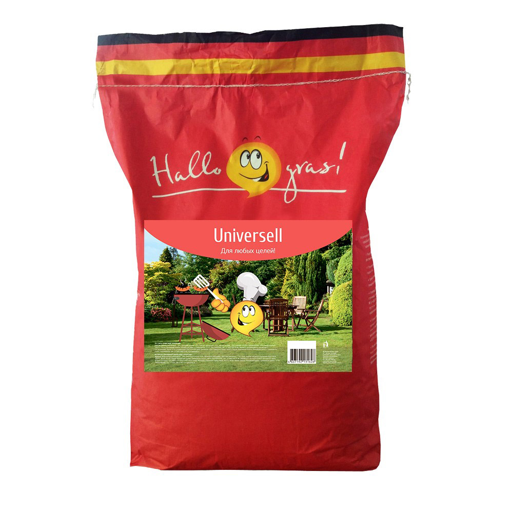 Семена газона UNIVERSELL серии «Hallo, Gras!» — универсальная травосмесь для быстрого создания газона на различных территориях. Хорошо произрастает на открытых солнечных и затененных участках.
