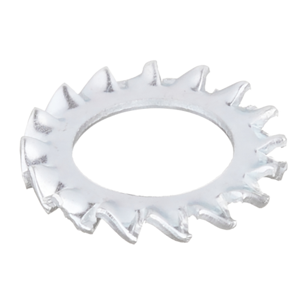Предназначена для увеличения опорной площади и снижения нагрузок на поверхность детали, а также для того, чтобы предотвратить процесс самовывинчивания крепежных элементов. Наружные зубчики обеспечивают надежное схватывание с поверхностью соединяемого изделия. Форма зубчиков такова, что при завертывании гайки, врезаясь острыми гранями в гайку и в опорную поверхность корпуса, препятствуют ее откручиванию. Цинковое покрытие защищает от коррозии.