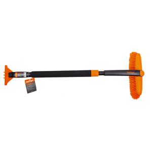 Щетка телескопическая для уборки снега и льда. Морозоустойчивый пластик, софт ручка для комфортной работы в холодную погоду, распушённая щетина, съемный скребок для удаления льда.