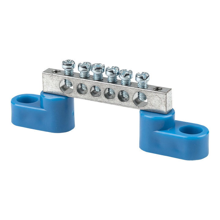 Шина нулевая на 2-х угловых изоляторах EKF PROxima 6х9 мм 6 отверстий синяя (10 шт.) (sn1-63-06-2)