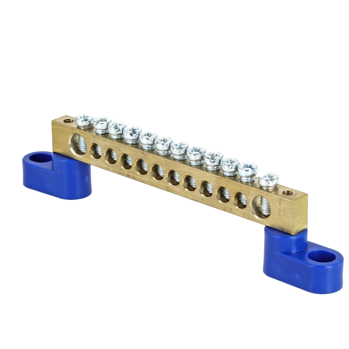 Шина нулевая на 2-х угловых изоляторах EKF PROxima 8х12 мм 12 отверстий синяя (10 шт.) (sn0-125-12-2)