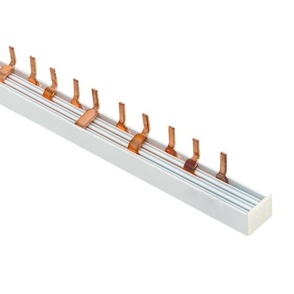 Шина соединительная представляет собой пластину, выполненную из меди, закрепленную в корпусе из диэлектрического материала, не поддерживающего горение, и выпускается стандартной длиной 1 метр.