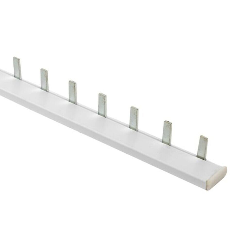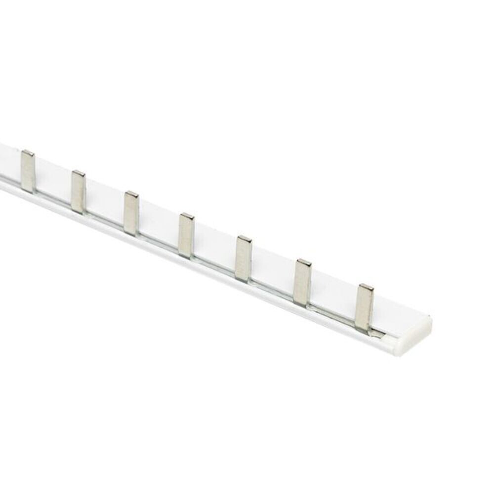 Шина соединительная представляет собой пластину, выполненную из луженой меди, закрепленную в корпусе из диэлектрического материала, не поддерживающего горение, и выпускается стандартной длиной 1 метр.