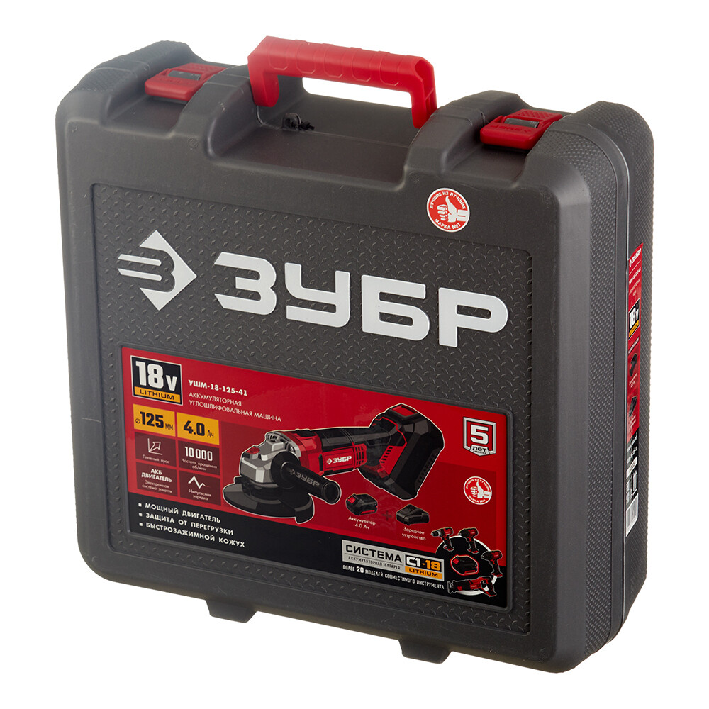 Шлифмашина угловая аккумуляторная Зубр УШМ-18-125-41 18В Li-Ion d125 мм 1 АКБ и ЗУ