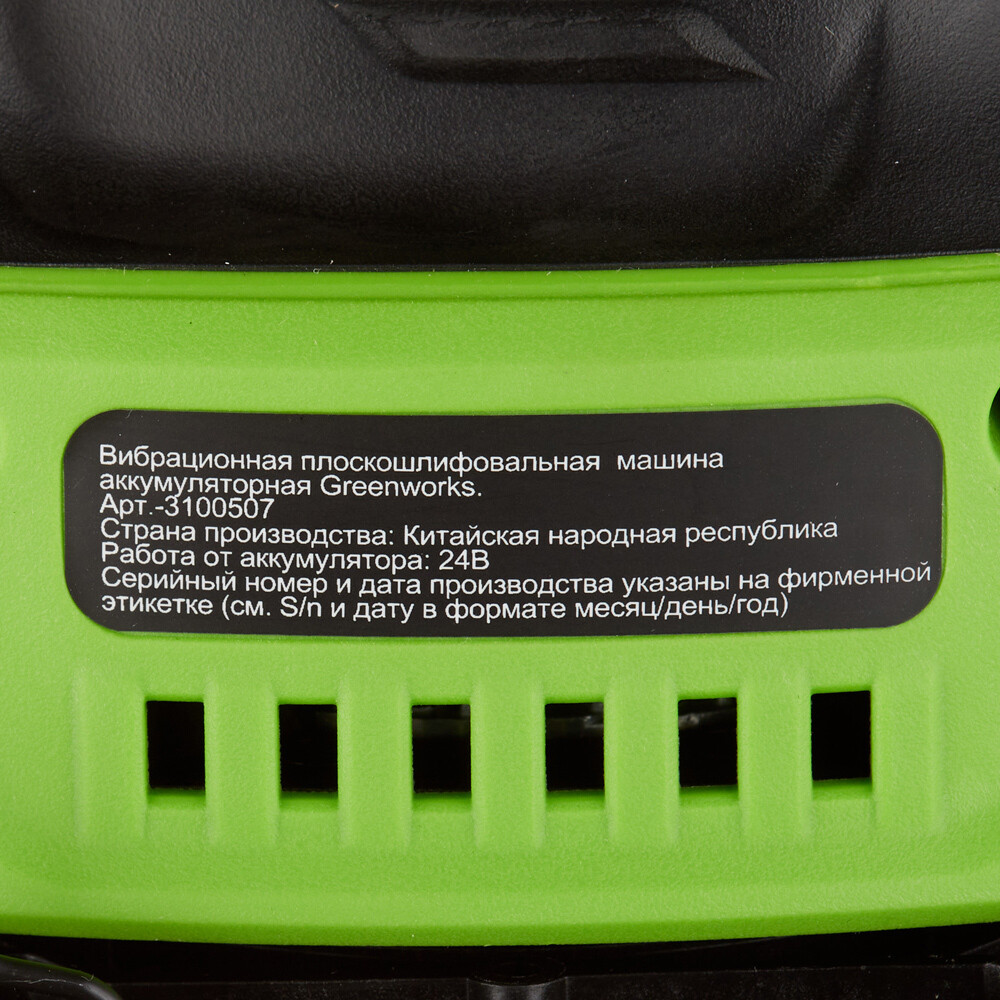 Шлифмашина вибрационная аккумуляторная Greenworks G24SS14 24В 115х140 мм без АКБ и ЗУ (3100507)