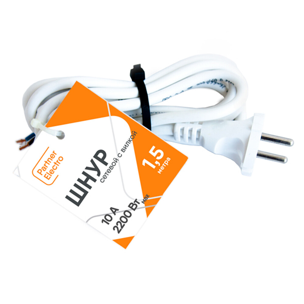 Шнур сетевой с вилкой 1,5 м ПВС-ВП 2х0,75 кв.мм 10 А Партнер-Электро белый (ЦБ-00013565/4507)