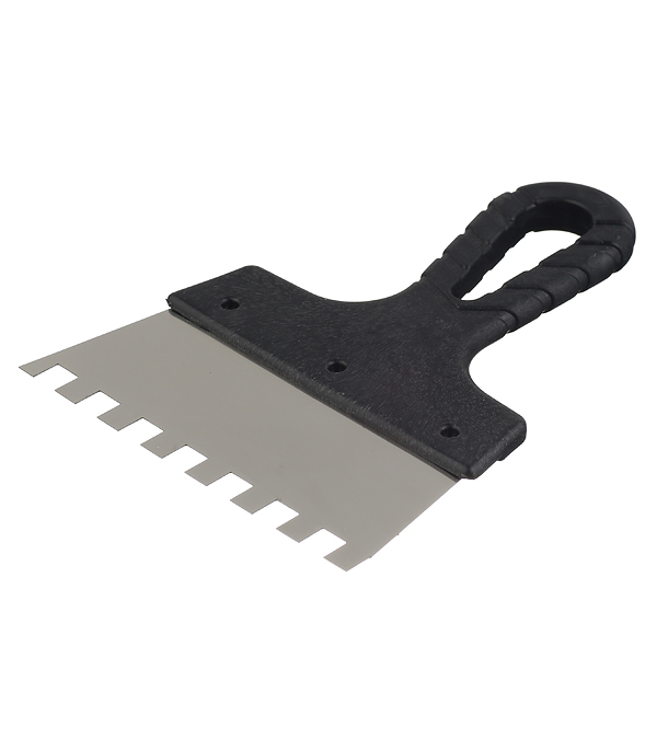 Предназначен для нанесения и распределения клеевых растворов и создания на их поверхности гребенчатой структуры при укладке керамической плитки, декоративного камня и др. Шпатель зубчатый служит для того, чтобы клеевая масса разравнивалась до одинаковой толщины слоя по всей площади материала без образования пустот.