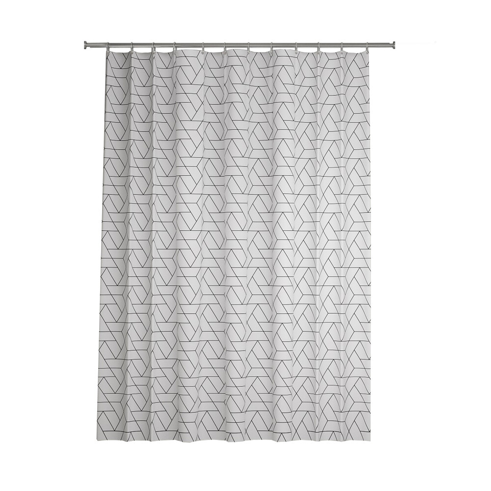 Текстильная штора для ванной с бело-черным принтом освежит пространство и привнесет в него легкое настроение. Изготовлена из износостойкого полиэстера с водоотталкивающей пропиткой. При попадании на ткань вода не впитывается, а скатывается каплями, даже при сильном напоре воды. По верхнему краю расположены 12 прозрачных пластиковых люверсов. Штора имеет утяжеляющую нить по нижнему краю, которая позволяет избежать задирания ткани. Легко ухаживать – шторку для ванной комнаты можно стирать в стиральной машине в деликатном режиме и гладить утюгом на минимальной температуре.
