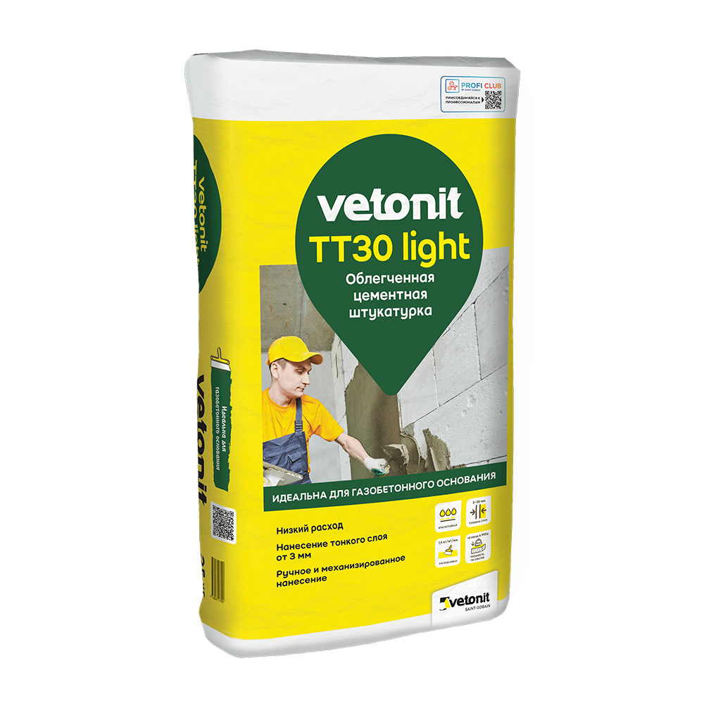 Штукатурка цементная Vetonit ТТ30 лайт облегченная 25 кг