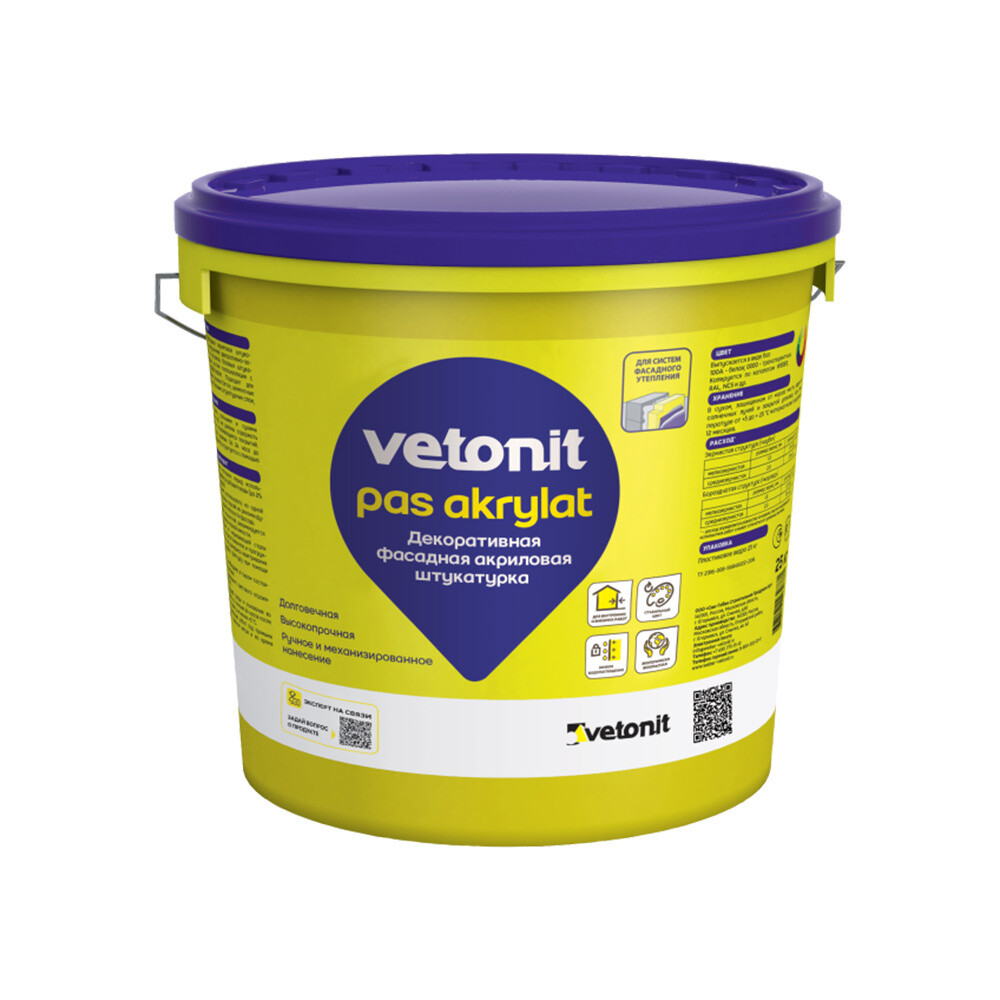 Штукатурка фасадная Vetonit Pas Akrylat акриловая шуба 1,5 мм база 100А белая 25 кг