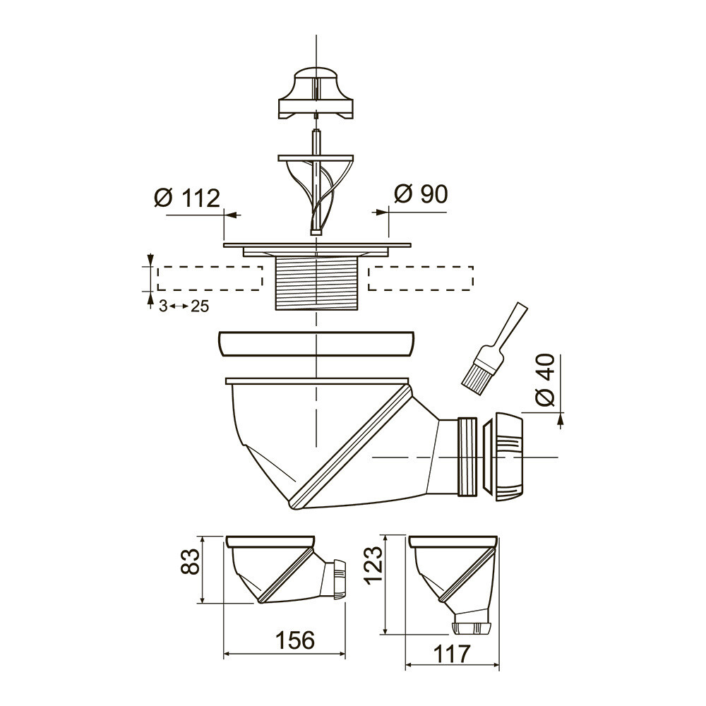 Сифон для душевого поддона Wirquin Pro с выпуском d90 мм с соединением 40 мм (30718759)