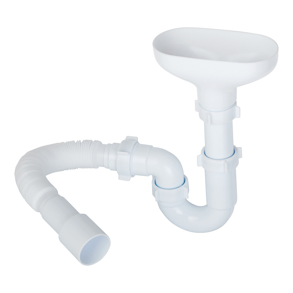 Комплектация: сифон, приемная воронка, гибкое соединение, хомут, дюбель.