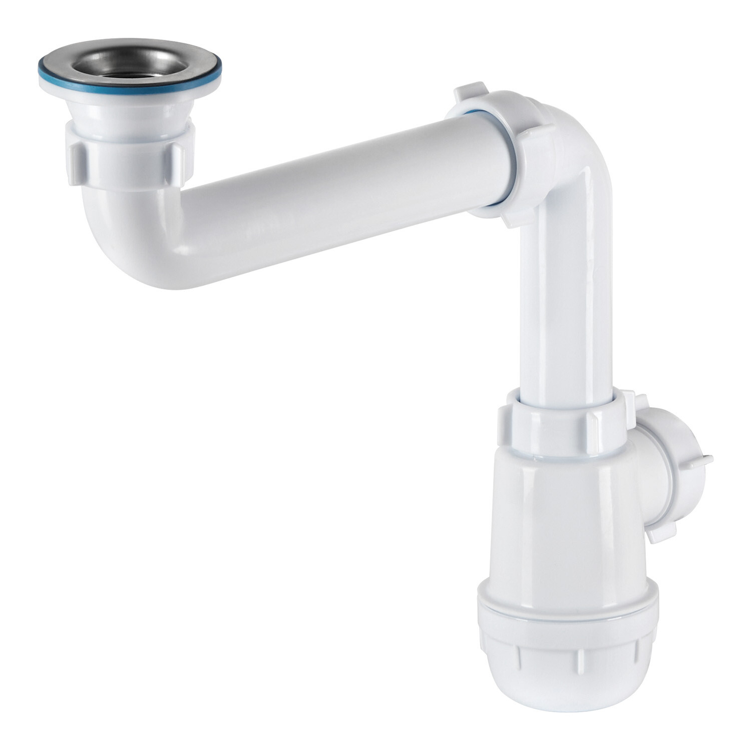 Смещенный сифон A5000 имеет отвод для подключения стиральной машины. Предназначен для более эффективного использования пространства под кухонной мойкой или под умывальником в ванной комнате. Форма сифона за счет увеличенного поперечного сечения позволяет поддерживать хорошую пропускную способность слива сточной воды, выполняя свою главную функцию — формирование гидрозатвора для отсечения неприятных запахов из канализации. Сифон прост в установке.