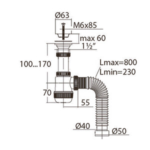 Комплектация: сифон, выпуск, гибкое соединение