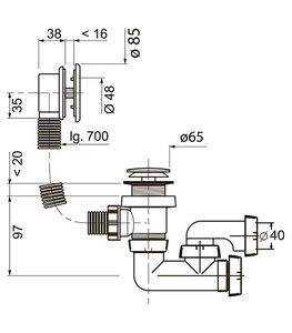 Сифон для ванны Wirquin Pro 1 1/2х40 мм регулируемый полуавтомат (30975014)