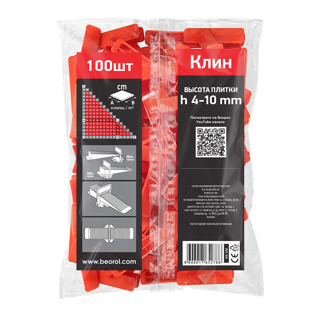 Система выравнивания плитки Beorol клин (100 шт.)
