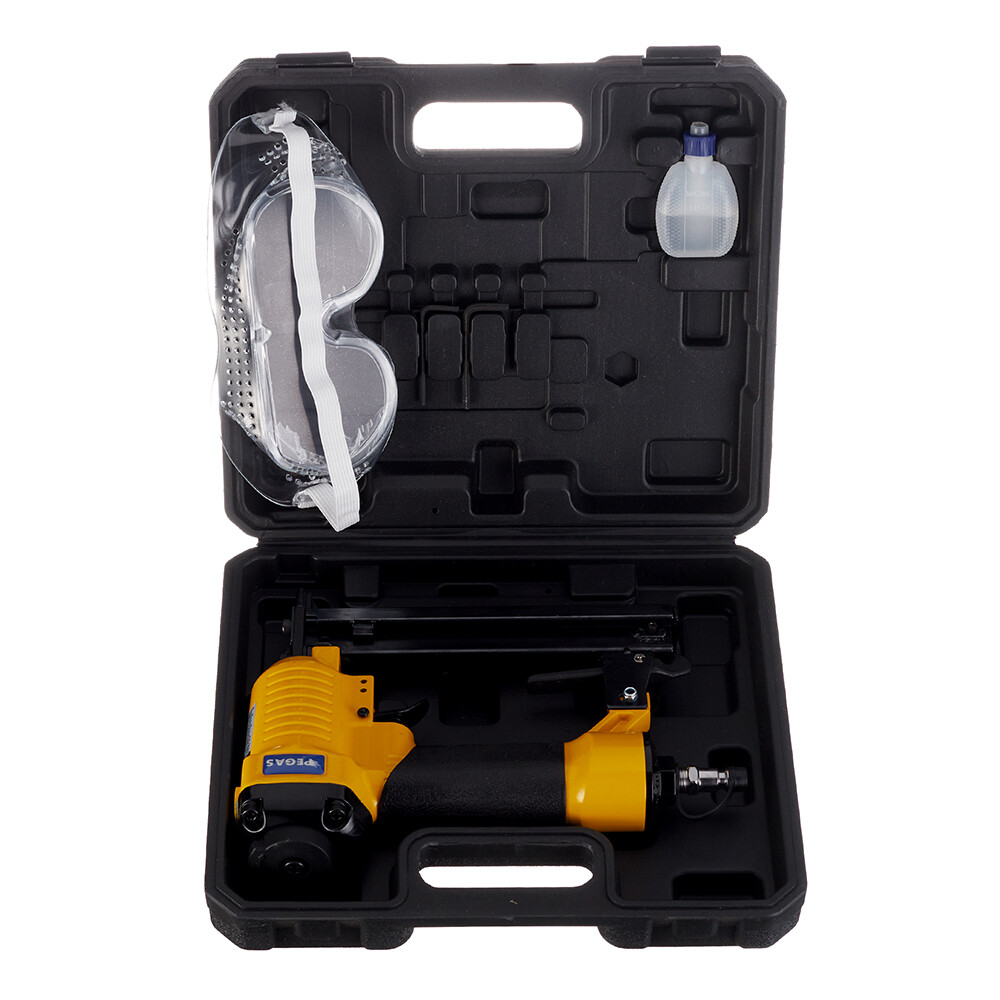 Скобозабивной пистолет Pegas pneumatic 1022J 1035 применяется для соединения материалов скобами при сборке и ремонте мебели, во время отделочных и строительных работ.