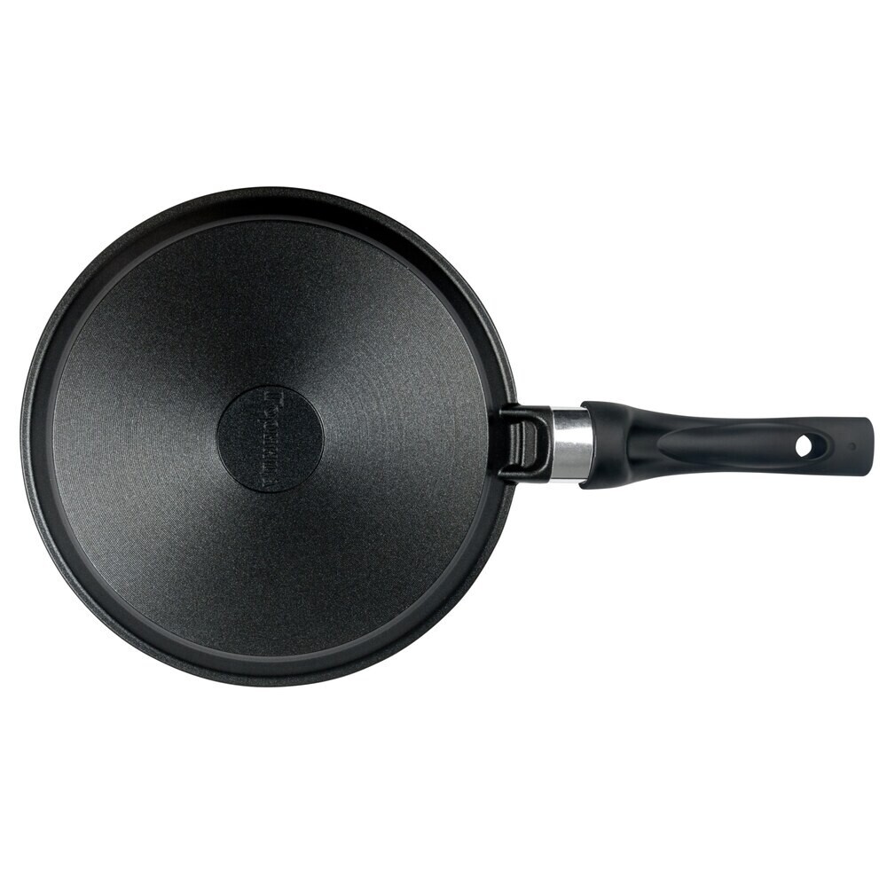 Блинная сковорода с антипригарным покрытием – литая алюминиевая посуда, которая подходит для газовых, электрических и стеклокерамических плит. При минимальном использовании масла получаются тонкие блины и пышные оладьи.