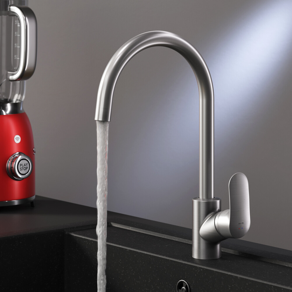 Плавное вращение поворотного излива в любом направлении обеспечивает непревзойденное удовольствие от использования и удобство в работе на кухне.