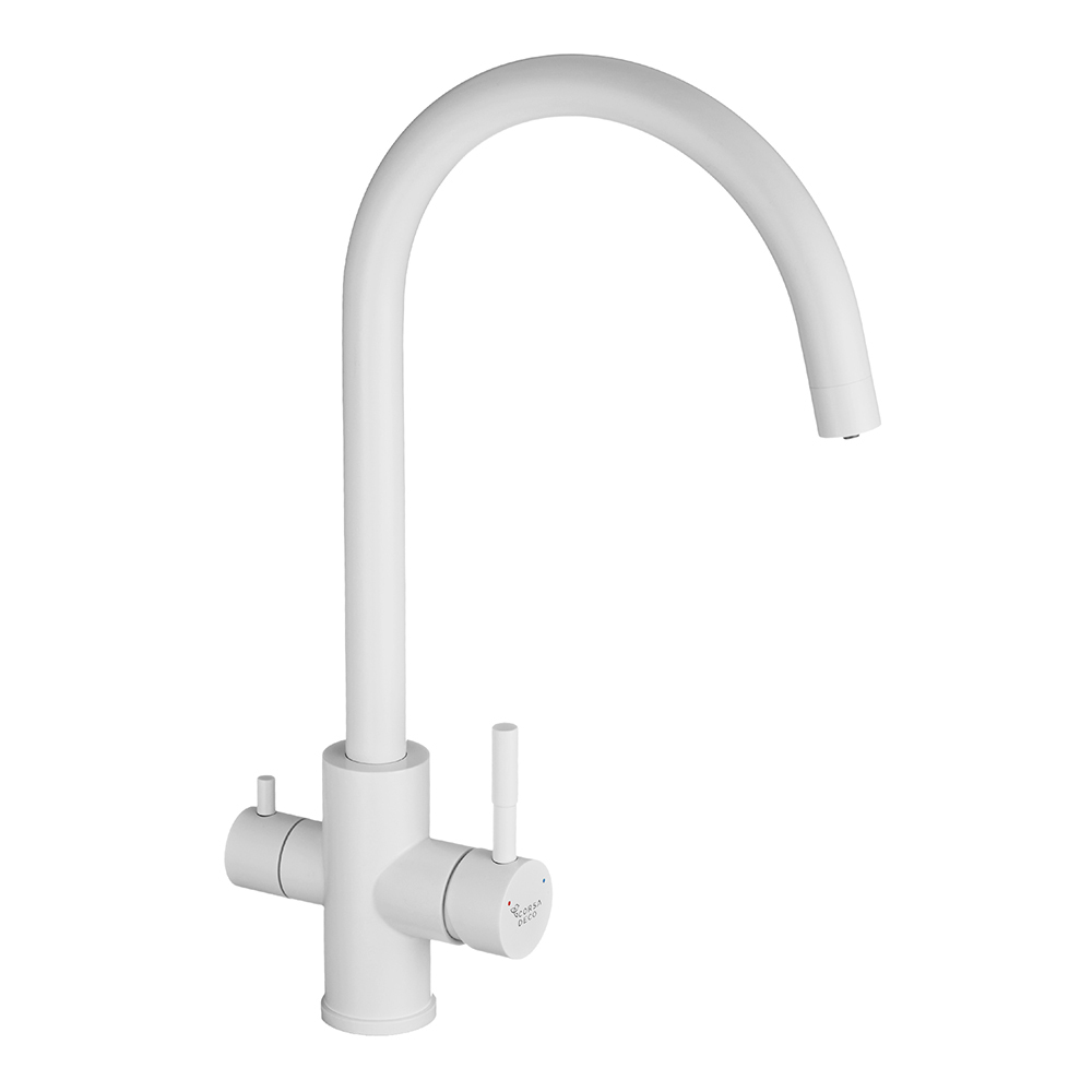 Смеситель для кухни Corsa Deco Pride белый с высоким изливом с подключением к фильтру однорычажный (966381)