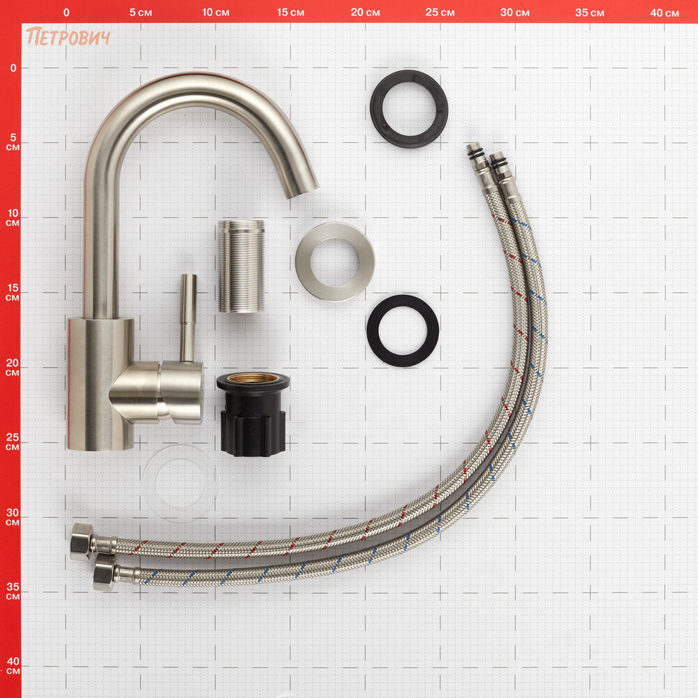 Смеситель, гибкая подводка, монтажный набор, инструкция по эксплуатации с гарантийным талоном.