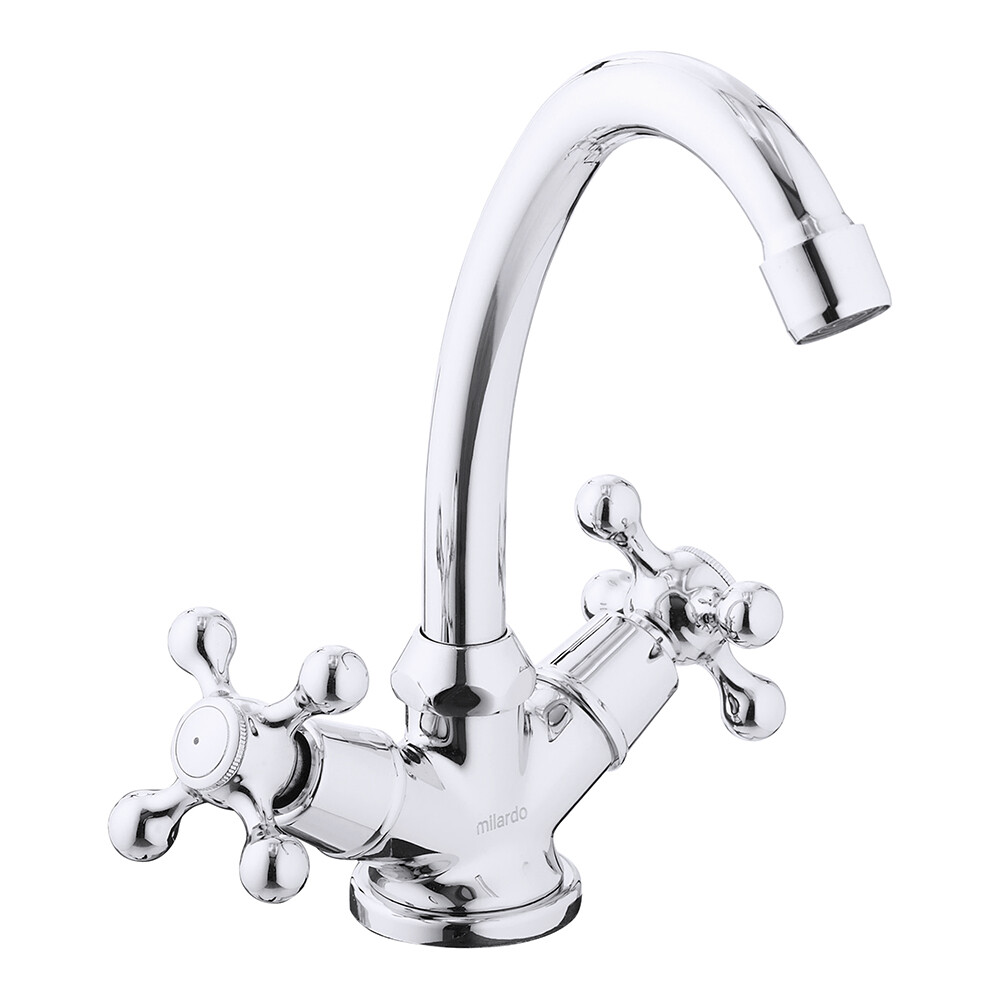 Смеситель для раковины Milardo Duplex хром двухвентильный с поворотным изливом (DUPSB00M01)