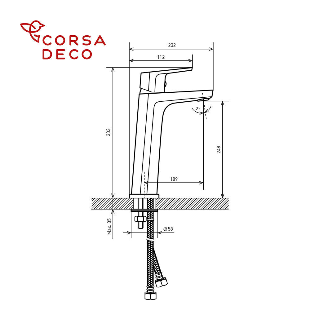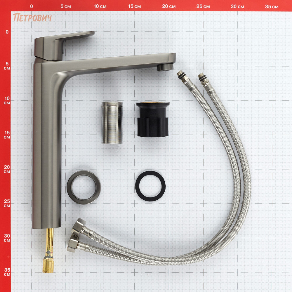 Смеситель, монтажный набор, гибкая подводка, гарантийный талон.