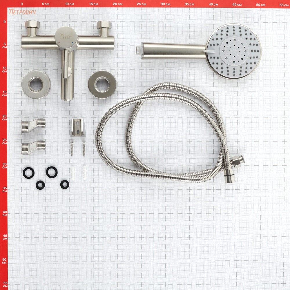 Смеситель, монтажный комплект, душевой шланг, ручная лейка, держатель, инструкция по эксплуатации с гарантийным талоном.