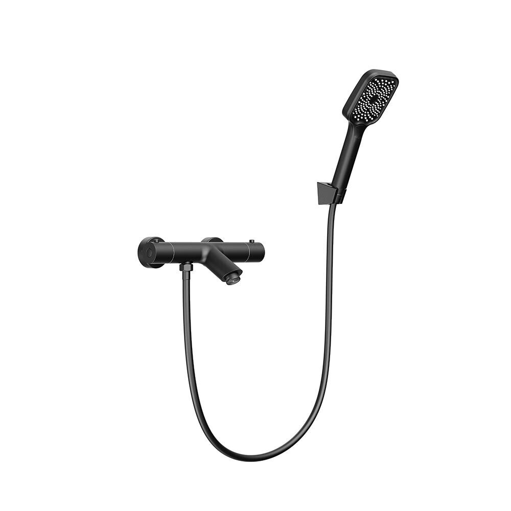 Смеситель для ванны Corsa Deco Thermo черный термостатический с коротким изливом с лейкой (FTBR01SB)