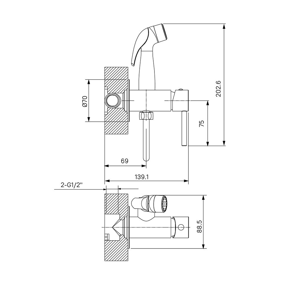 Смеситель с гигиеническим душем встраиваемый Milardo Tidy со скрытой частью в комплекте черный (001BLR0M08)