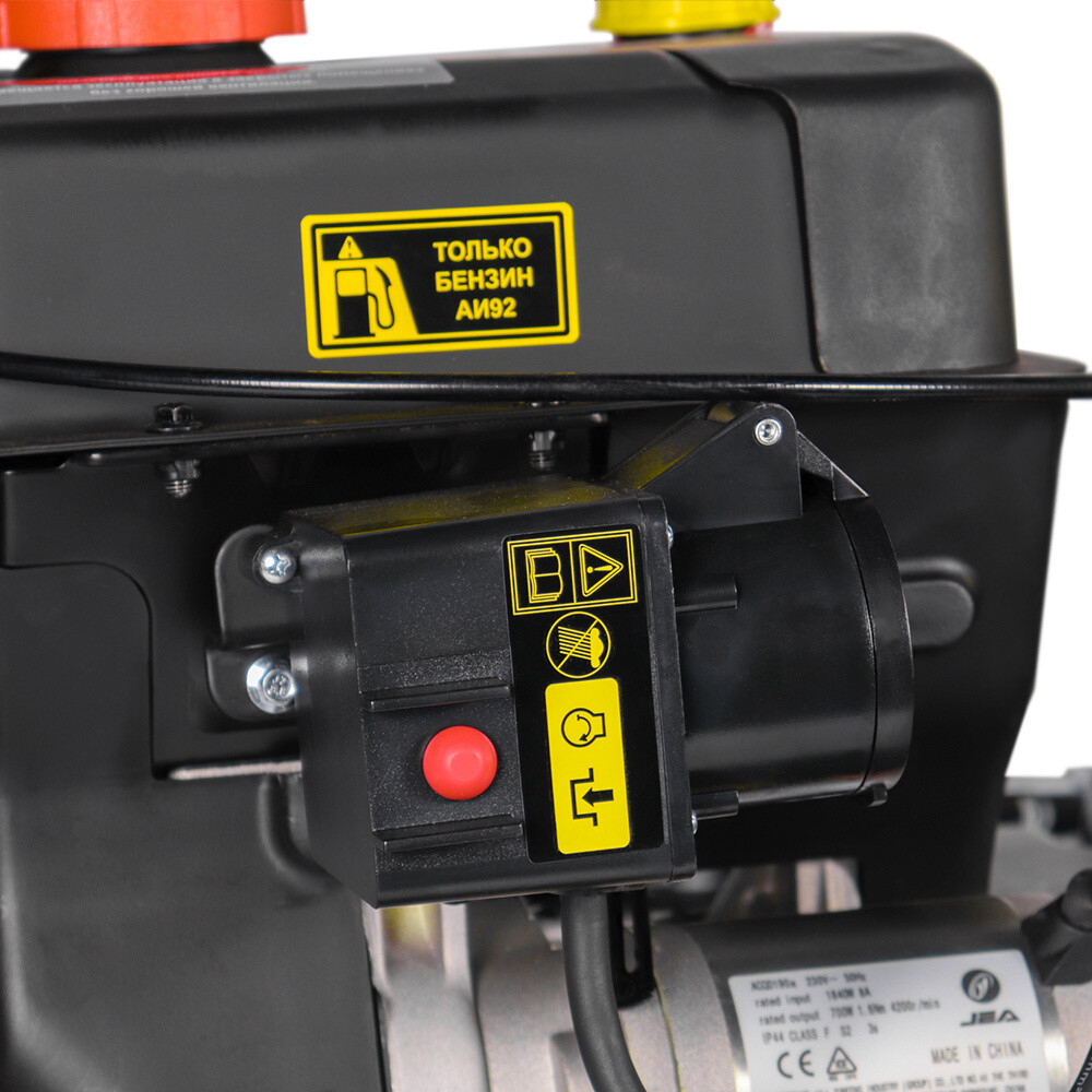 Снегоуборщик оборудован всеми необходимыми для частого использования функциями. Для работы в темное время суток, снегоуборщик оборудован галогеновой фарой, а для упрощения запуска при экстремально низких температурах – электростартером, позволяющим запустить мотор нажатием одной кнопки от сети 220 Вольт.