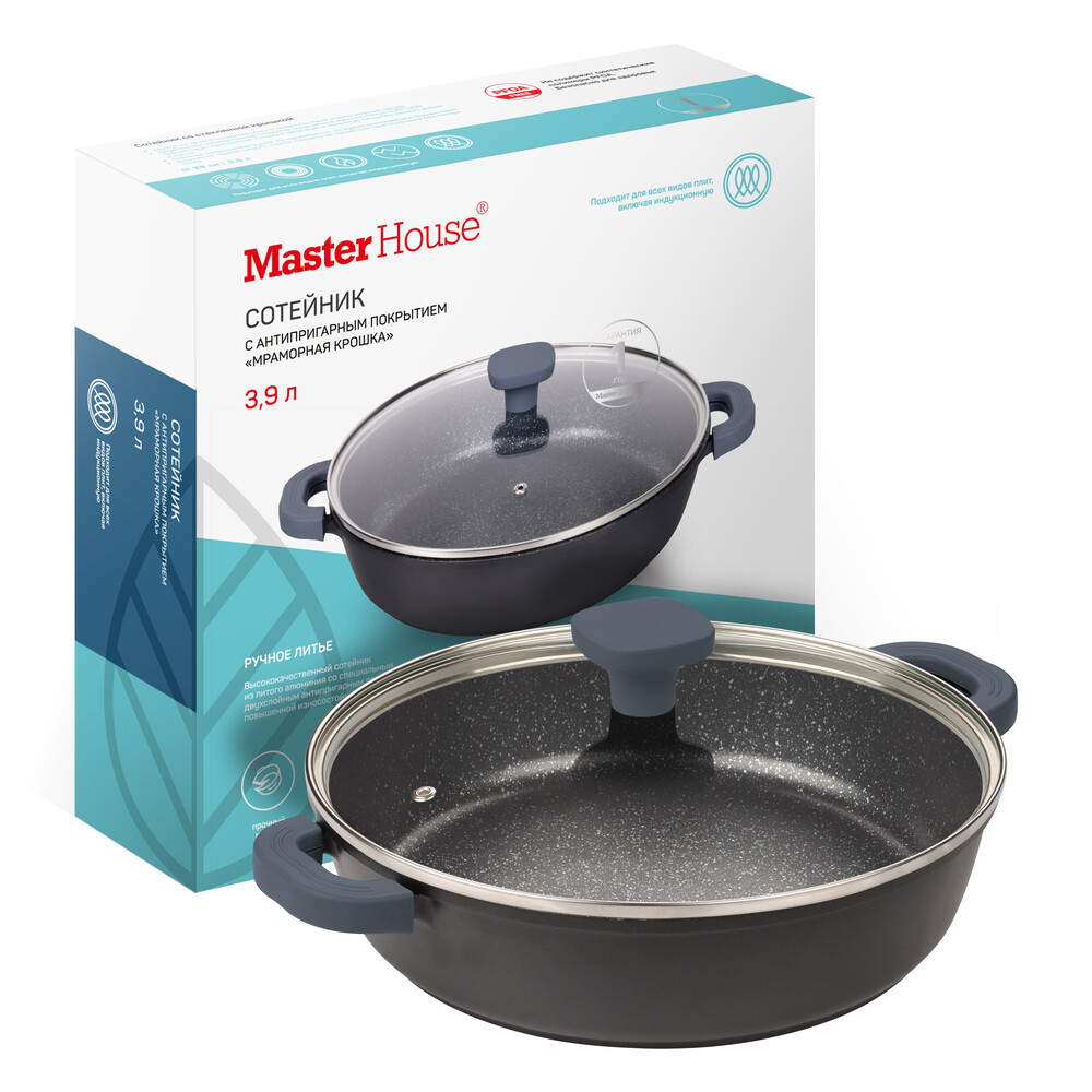 Сотейник Master House Шеф Андреа d24 см литой алюминий с антипригарным покрытием с крышкой (75346)