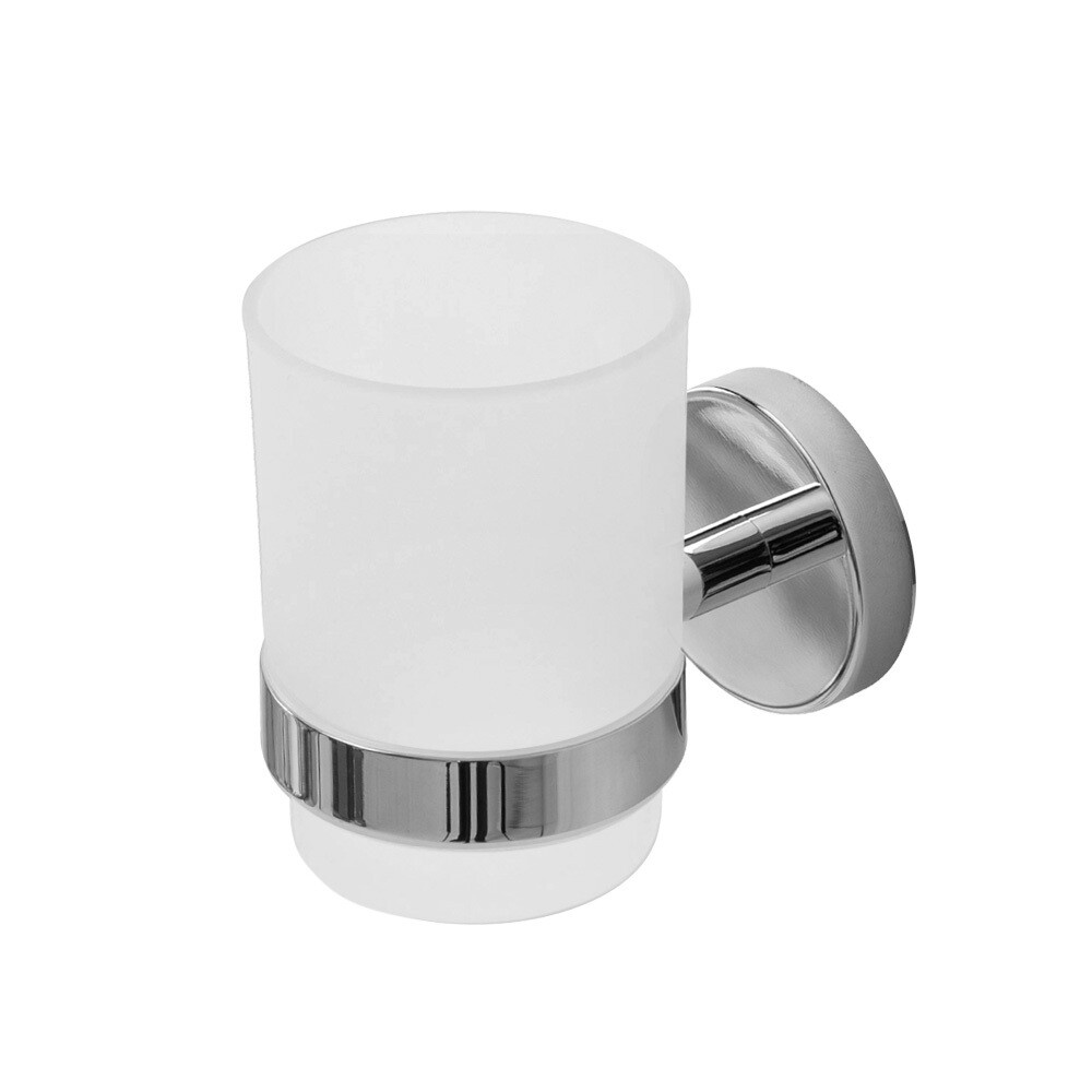 Настенный держатель со стаканом из стекла и хромированным покрытием.