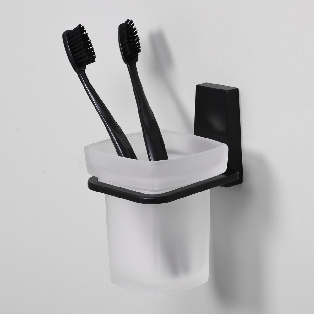 Стакан для ванной WasserKraft Abens с держателем стекло матовый/металл черный (K-3228)
