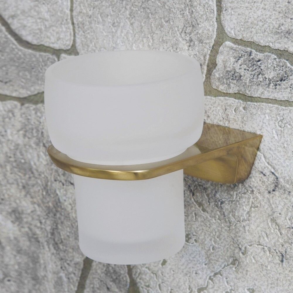 Стакан для ванной WasserKraft Aisch с держателем стекло матовый/металл золото (K-5928)
