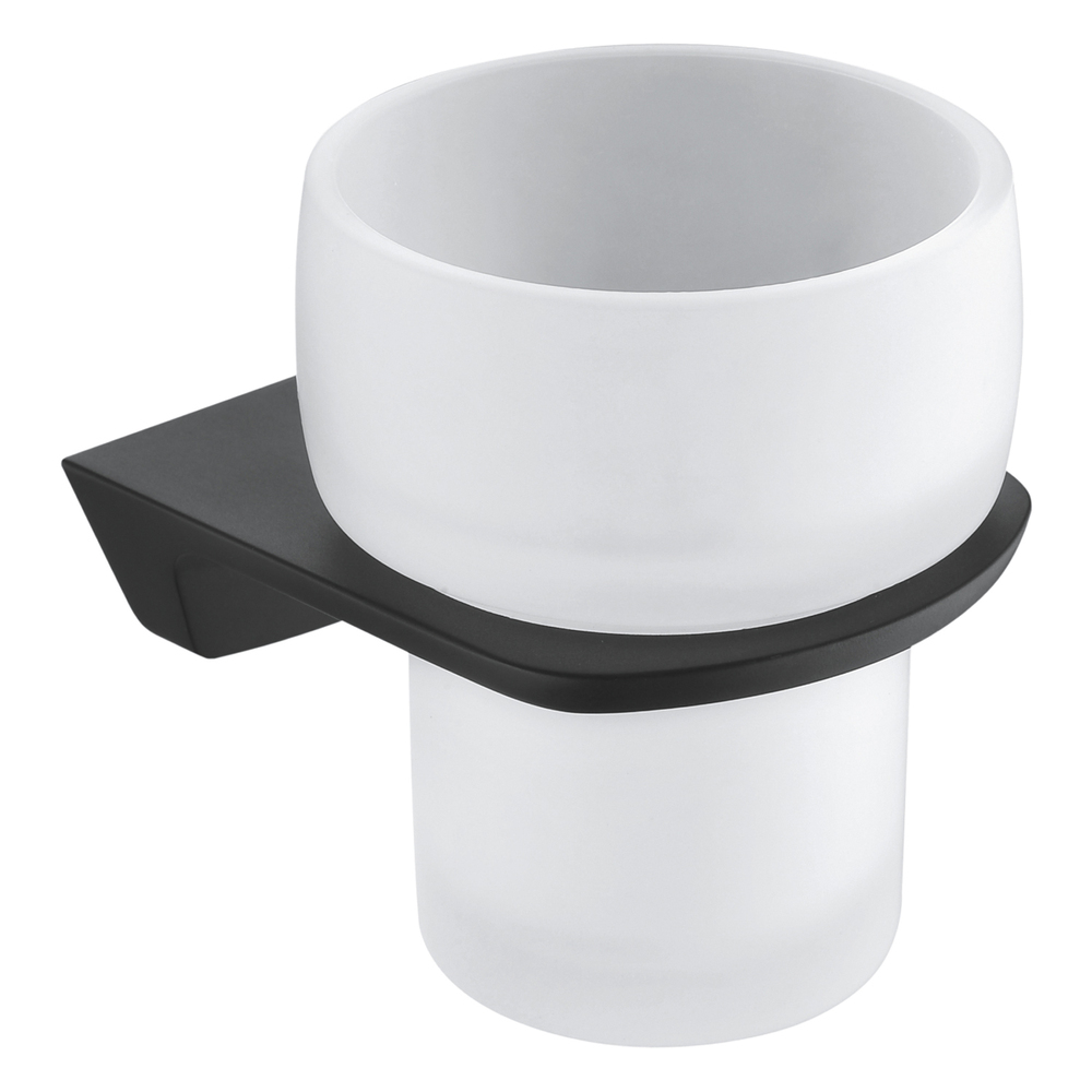 Стакан для ванной WasserKraft Elbe с держателем стекло матовый/металл черный (K-7228)
