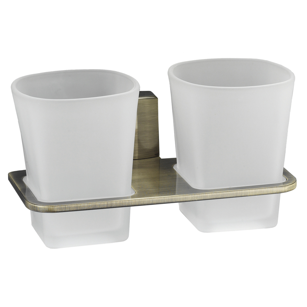 Стакан для ванной WasserKraft Exter с держателем двойной стекло матовый/металл светлая бронза (K-5228D)