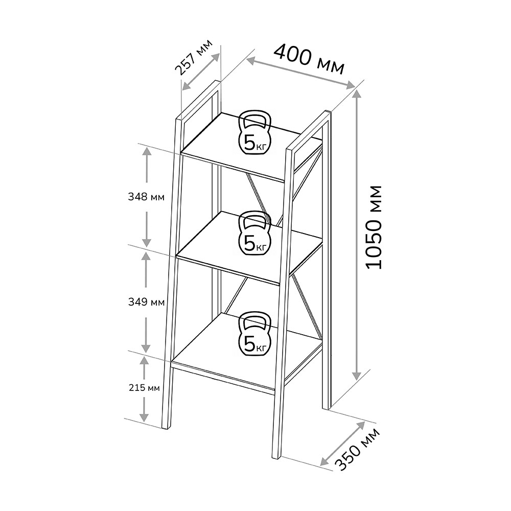 Конструкция стеллажа устойчива и не требует дополнительного крепления к стене.