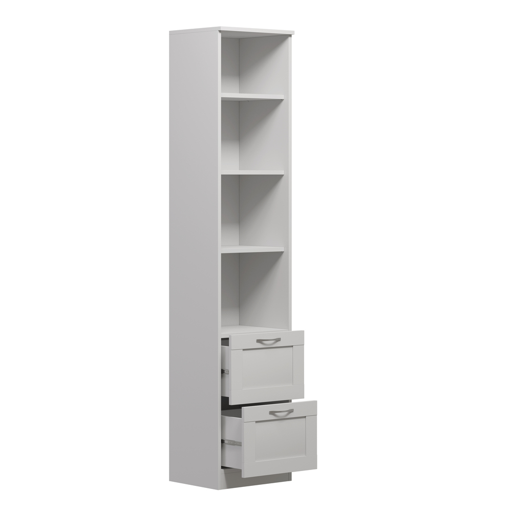 Стеллаж Сириус узкий 39х190 см с 2 ящиками и четырьмя полками. Выполнен в классическом стиле. Размер стеллажа 39х35х190 см. Подходит для использования в домашней и офисной обстановке. Выполнен из ЛДСП.